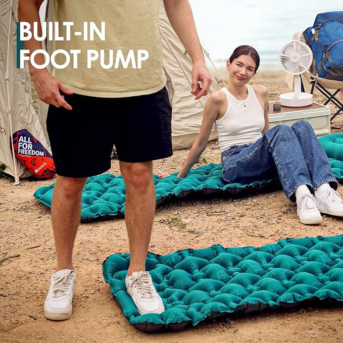 - 【Nadmuchiwanie w 30 sekund i 1 sekunda do opróżniania】Kompaktowa karimata jest wyposażona w wbudowaną pompkę nożną, która umożliwia całkowite napompowanie karimaty poprzez ubijanie stopą w 30 sekund. Jest to wygodniejsze, bardziej oszczędne i czystsze niż dmuchanie ustami lub wyciskanie ręczne. Aby zapewnić przyjazne dla użytkownika, nasze grube maty są wyposażone w oddzielną pompkę i zawór spustowy
