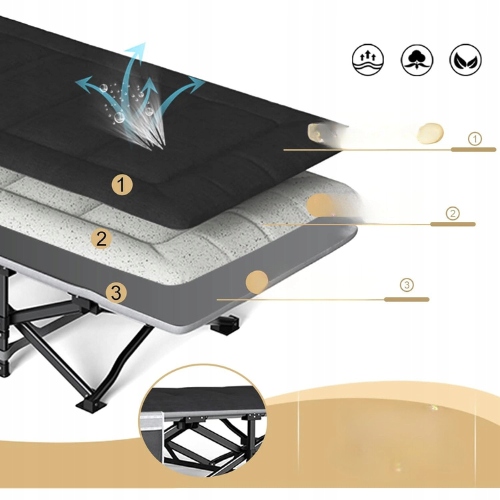 Camping, podróże, wędrówki, festiwale, ogród czy dodatkowe łóżko w domu – to wszechstronne łóżko turystyczne łączy wygodę, funkcjonalność i mobilność w jednym produkcie.