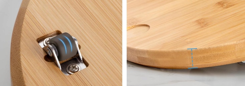 Podstawka została wykonana z litego drewna bambusowego o imponującej grubości aż 20 mm. Gwarantuje to bezkompromisową wytrzymałość, luksusowy wygląd oraz doskonałą ochronę nóżek robota przed zużyciem. Ponadto wszystkie krawędzie deski zostały starannie zaokrąglone i wyszlifowane, dzięki czemu są w pełni bezpieczne i przyjemne dla dłoni.