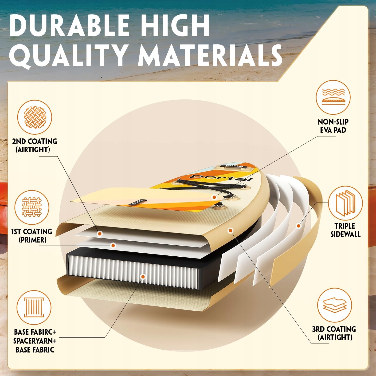 Dzięki szerokiej konstrukcji deska SUP Portal gwarantuje lepszą stabilność i równowagę, co jest kluczowe podczas wodnych aktywności. Grubość 15 cm pozwala na bezpieczne przewożenie większych ciężarów. Ulepszone krzyżowe linki bezpieczeństwa pomagają utrzymać bagaż na miejscu podczas pływania czy łowienia ryb.