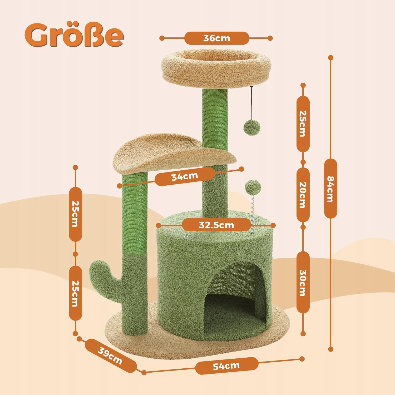 Drapak dla kota, 84 cm z pluszową jaskinią i kulą z pomponem