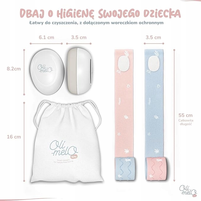 Regulowany, antypoślizgowy pałąk dopasowuje się do główki dziecka bez nacisku na ciemiączko, zapewniając wysoki komfort noszenia oraz stabilność podczas snu i aktywności.