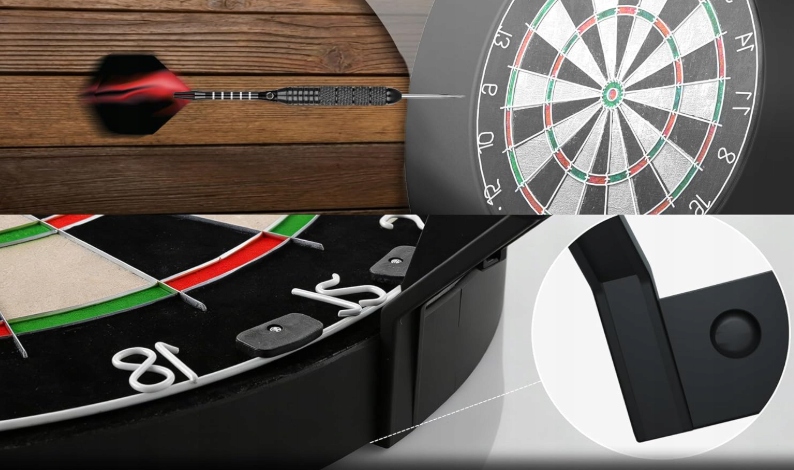 - Kąt padania światła (ok. 120º z góry tarczy) został zoptymalizowany tak, aby skutecznie redukować cienie rzucane przez wbite lotki, co drastycznie poprawia Twoją celność i komfort gry.