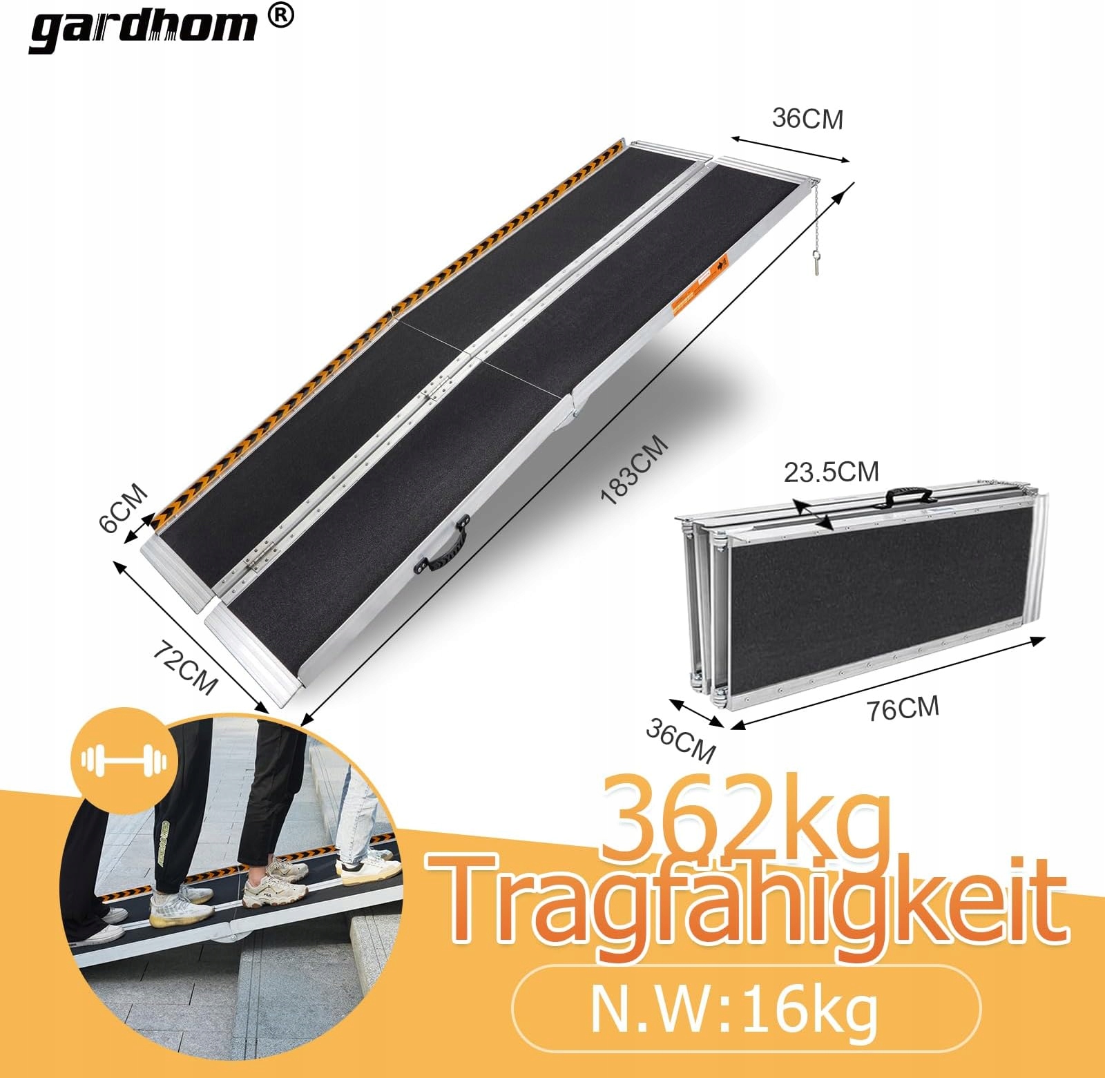 Rampa najazdowa lub dla wózków gardhom składana rampa 362kg 183 x 72 x 5 cm