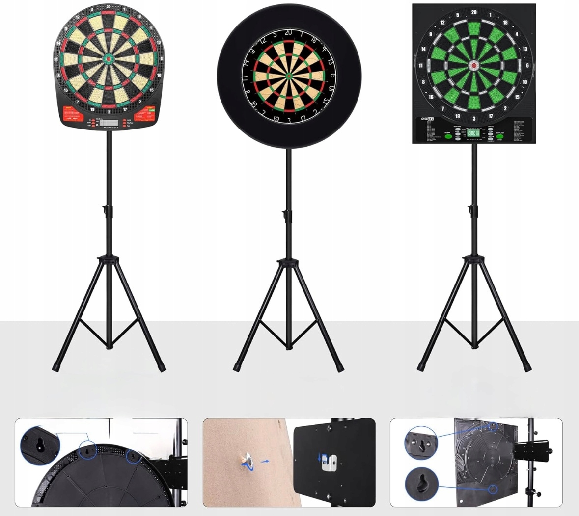Przymocowanie tarczy jest błyskawiczne i solidne. Za pomocą maksymalnie trzech śrub (w zestawie lub osobno) zamontujesz dowolną standardową tarczę do rzutek. Całość jest zaprojektowana tak, aby zapewnić maksymalną stabilność nawet podczas dynamicznej gry.