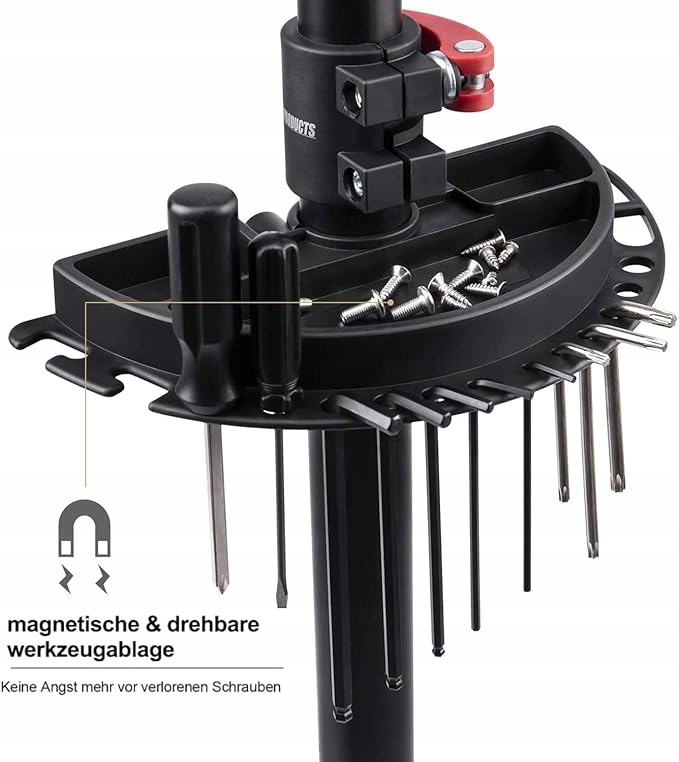 na dużej półce na narzędzia można umieścić narzędzia, co zajmuje mało miejsca. Ponadto magnes może dokręcić śruby i nakrętki.