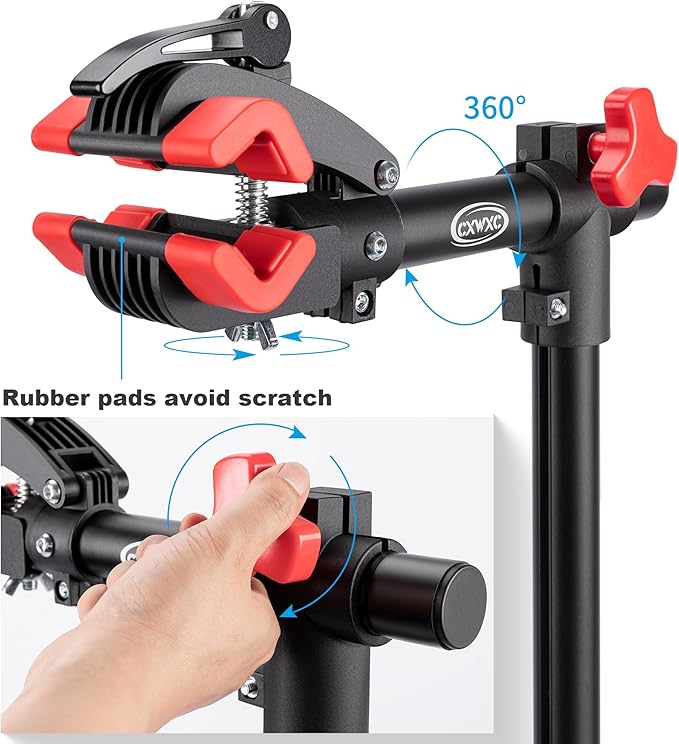 CXWXC Stojak do montażu rowerów, stojak do montażu do dużych obciążeń, stojak rowerowy ze spawaną głowicą zaciskową, obracany o 360°, urządzenia do szybkiego zwalniania