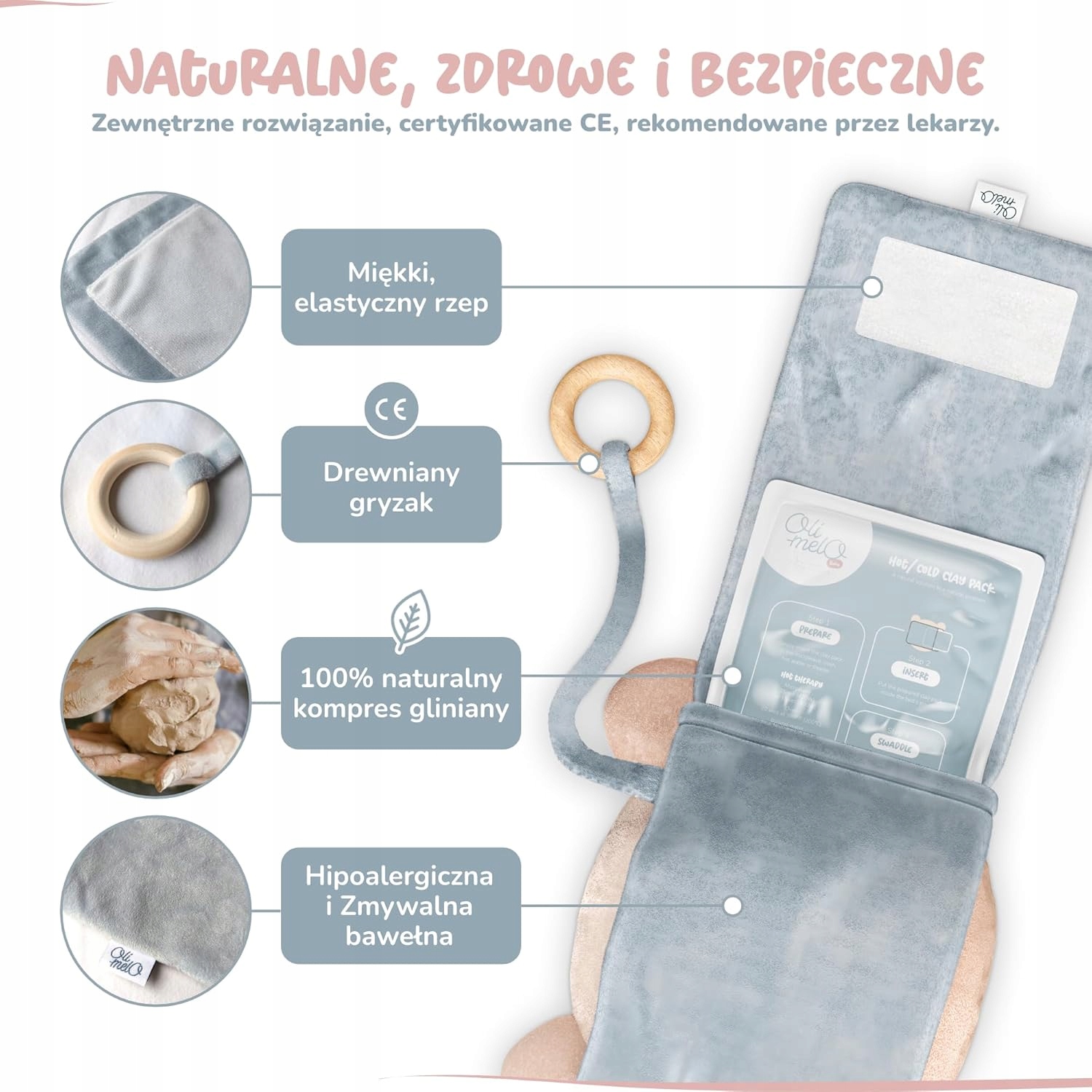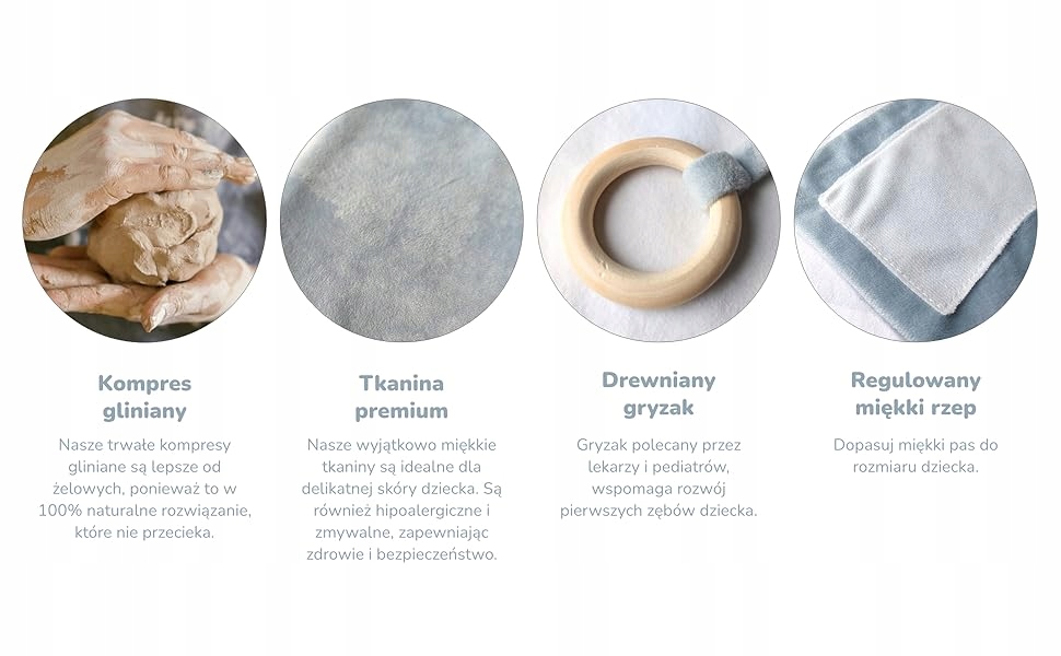 - Bezzapachowość: W przeciwieństwie do wkładów zbożowych czy pestek, glinka po podgrzaniu nie wydziela specyficznego zapachu, co jest ważne dla wrażliwych nosków niemowląt.