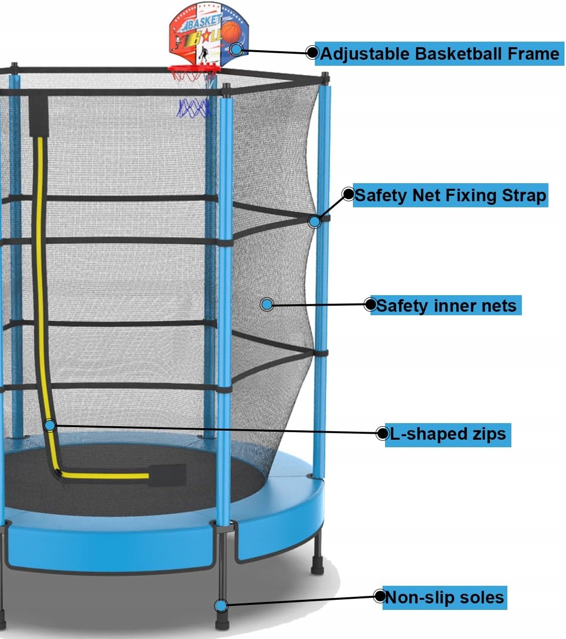Trampolina z koszem do koszykówki to połączenie, które podwaja radość z zabawy! Dzieci mogą skakać i jednocześnie ćwiczyć celność, rozwijając swoje umiejętności motoryczne i koordynację. Wysokość kosza można regulować, dostosowując ją do wzrostu i wieku dziecka, co czyni ją idealną dla różnych grup wiekowych. Do zestawu dołączona jest również gratis mała nadmuchiwana piłka do koszykówki, by zabawa mogła zacząć się od razu.
