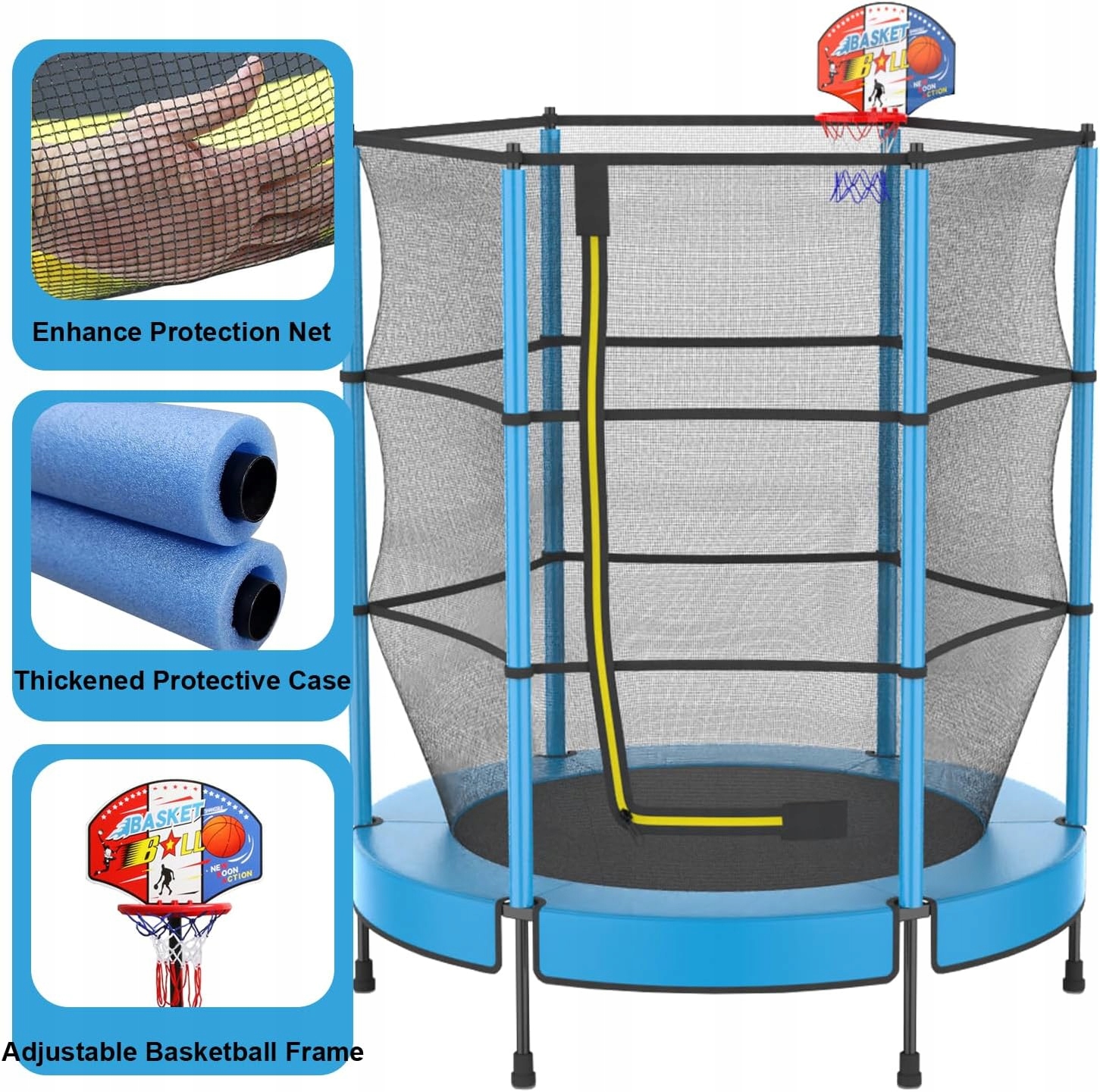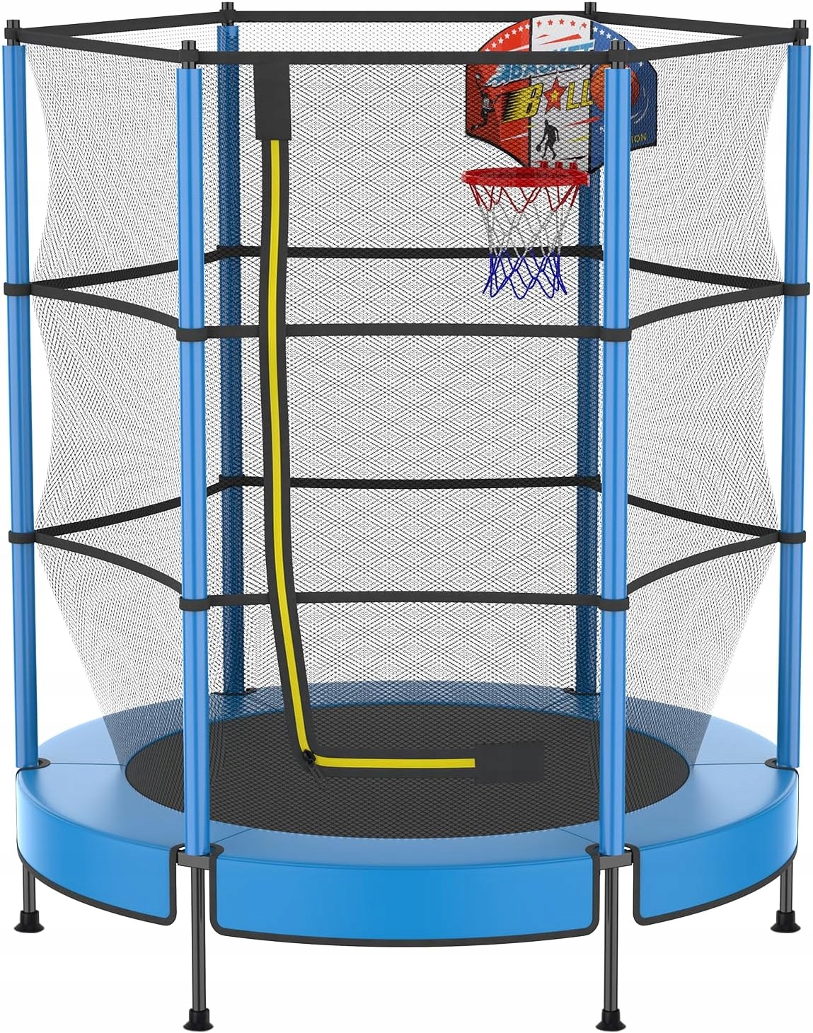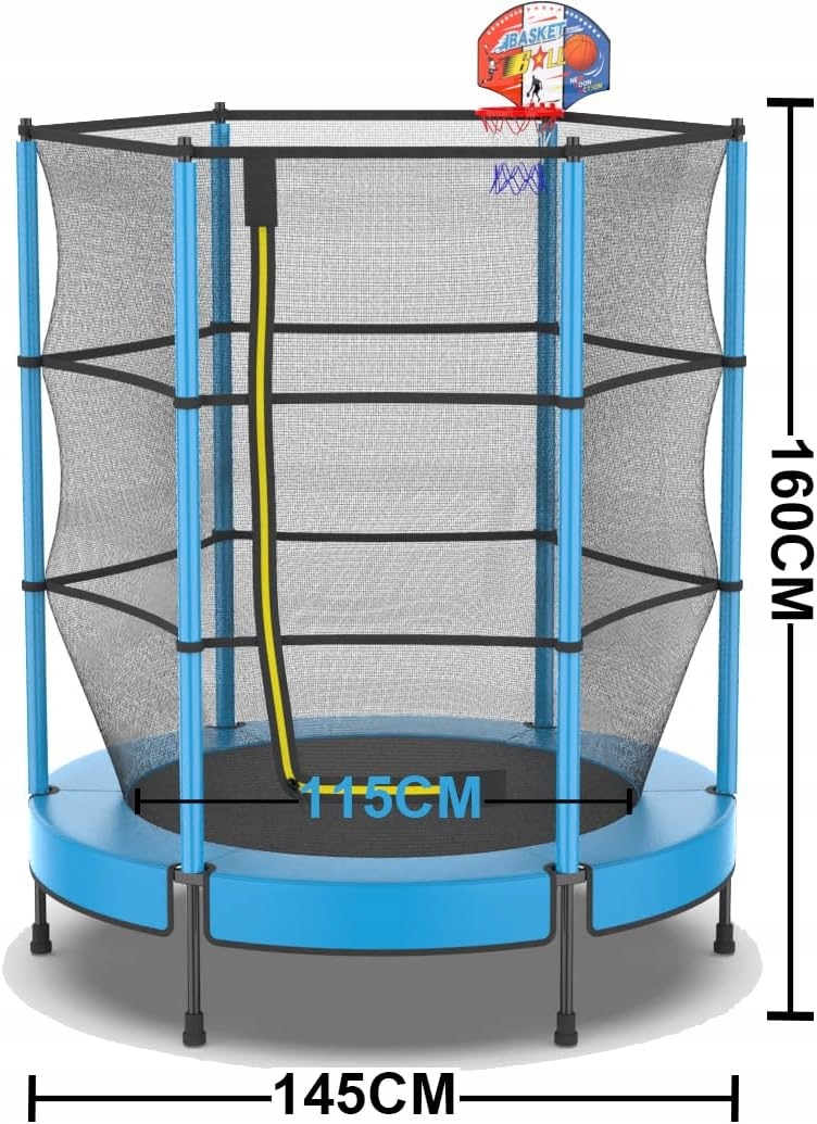 Trampolina dziecięca PILIN BC-7 o średnicy 145 cm to idealne rozwiązanie do aktywnej zabawy dla dzieci w wieku od 1 do 8 lat. Ten wszechstronny model w kolorze niebieskim, wykonany z trwałego nylonu i stali, doskonale sprawdzi się zarówno w pomieszczeniach, jak i na zewnątrz. Wyposażona w kosz do koszykówki i podwyższoną siatkę bezpieczeństwa, zapewnia bezpieczną i pełną wrażeń rozrywkę przez cały rok.